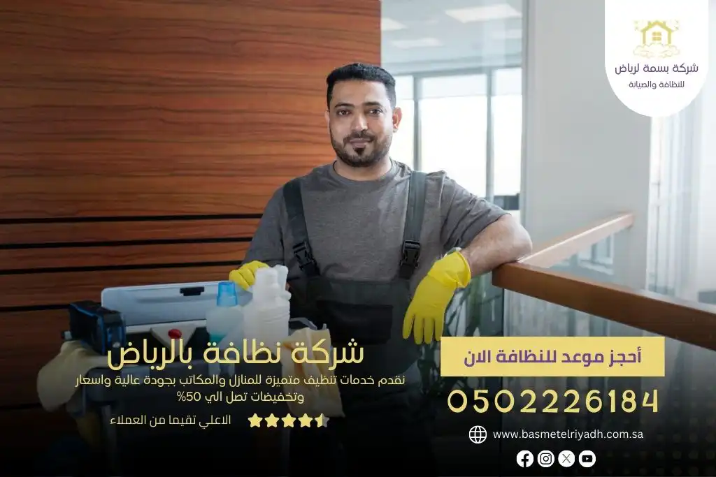 إذا كنت ترغب في الحصول على خدمات التنظيف بأسعار وبجودة عالية فعليك الاستعانة بنا كأفضل شركة نظافة بالرياض وخبرة تزيد عن 17 عام في هذا التخصص ولا تنسي في السؤال خدمة عملائنا عن خصمك الحالي والعروض التي تتمتع بتخفيضات تصل الي 50%