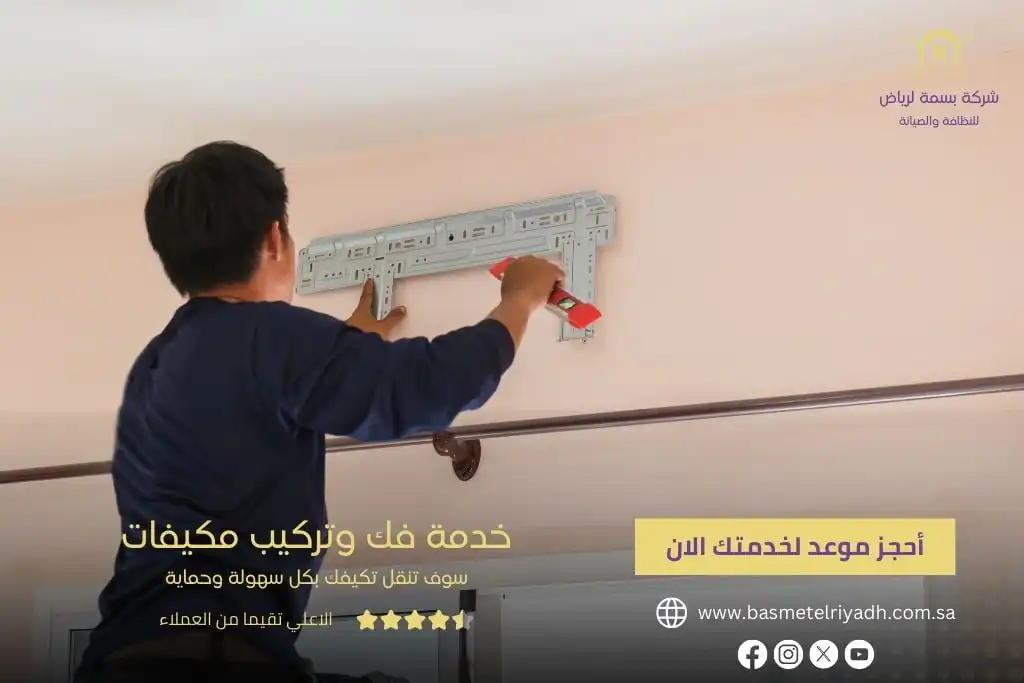 خدمة فك وتركيب مكيفات الاحترافية وموثوقة. فريق شركة بسمة الرياض المدرب جيدًا يضمن لك السرعة والدقة بأسعار تنافسية.